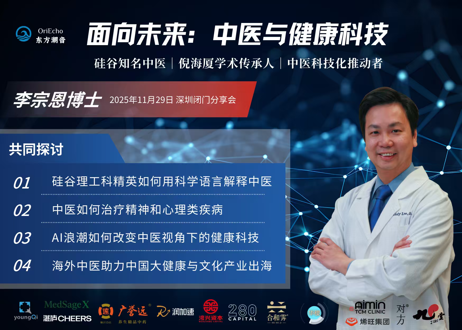 感謝多方的協調安排,以及許多贊助夥伴的支持,在深圳特意舉辦一場「面向未來:中醫與健康科技」高峰座談會,許多相關產業的知名人士從各地來到深圳,一起討論醫學與科技的未來。座談會以對話方式進行,由知名心理學家劉志斌博士及華潤潤加速負責人鄭翊喆博士提出問題,我們一起來探討。